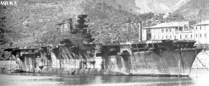 In seguito al devastante attacco aereo britannico alla base di Taranto (11 novembre 1940), effettuato da aerosiluranti britannici decollati da una portaerei in navigazione nello Ionio, e ai successivi, sfortunati scontri navali di Matapan e Gaudo (28 marzo 1941), i vertici della Marina Militare Italiana compresero finalmente che, nonostante la posizione geografica della penisola – piattaforma naturale protesa nel cuore del Mediterraneo che, per molto tempo, ma a torto era stata ritenuta in grado di fungere da gigantesco aeroporto – il possesso di una o più portaerei sarebbe risultato comunque essenziale per cercare di contrastare la Royal Navy che, proprio grazie al possesso di unità di questo tipo, aveva dimostrato in più di un’occasione di potere dominare a suo piacimento, o quasi, il cosiddetto Mare Nostrum. L’assenza in seno alla nostra Marina di una nave idonea al trasporto di mezzi aerei era stata dovuta essenzialmente alla scarsa lungimiranza dei comandi e dello stesso Mussolini che, tra il 1925 e il 1935, avevano scartato più di un progetto relativo a questa particolare tipologia di nave. Atteggiamento decisamente superficiale che, tra l’autunno del 1940 e i primi mesi del 1941, dovette scontrarsi – come si è detto – con la dura realtà dei fatti e con irrinunciabili, nuove esigenze operative. Fu dunque per queste ragioni che i progettisti di Supermarina iniziarono ad esaminare la questione, rendendosi però conto dell’impossibilità di approntare in tempi accettabili un nave idonea allo scopo: problema che tuttavia venne aggirato attraverso la riconversione di due transatlantici il Roma e l´Augustus, destinati a diventare rispettivamente le portaerei Aquila e Sparviero. La trasformazione del Roma in Aquila – lavoro che procedette in maniera relativamente spedita a causa della penuria di materiali e mano d’opera specializzata – ebbe inizio alla metà del 1941 nei cantieri Ansaldo di Genova (gli unici ritenuti idonei all’impresa) e proseguì fino all’ 8 settembre del 1943. L’armistizio sorprese, infatti, la bella unità ormai allestita al 98 per cento e quasi pronta al varo. La portaerei Aquila dislocava 27.800 tonnellate (a pieno carico), misurava 232 metri di lunghezza, trenta di larghezza e 7,3 di altezza. Essa era dotata di 4 turboriduttori Belluzzo con 8 caldaie “RM” (e 8 eliche) capaci di sviluppare una potenza totale di 151.000 cavalli e di imprimere allo scafo la ragguardevole velocità massima di 30 nodi. L’Aquila, che aveva un’autonomia di 5.500 miglia a 18 nodi e di 1.580 a 29 nodi, avrebbe dovuto ricevere un armamento difensivo decisamente adeguato, composto da 8 pezzi da 135/45, dodici nuovissimi pezzi antiaerei a tiro rapido da 65/54 e ben 132 mitragliere pesanti, anch’esse antiaeree, da 20/65. La nave aveva in dotazione due elevatori e due catapulte ed era equipaggiata con 51 caccia bombardieri monomotori Reggiane Re 2001. L’equipaggio sarebbe stato composto da 1.420 tra ufficiali, marinai, avieri e piloti. Nel settembre del ’43, le forze di occupazione tedesche si impadronirono facilmente dell’unica portaerei italiana (la costruzione della Sparviero era stata infatti abbandonata nella primavera del ’43 per motivi di bilancio e per carenza di acciaio) e, nonostante il notevole avanzamento dei lavori di bordo, ne iniziarono il parziale smantellamento per ricavarne metallo. L’opera di demolizione procedette tuttavia a rilento e successivamente, nel corso del 1944, l’Aquila venne ripetutamente danneggiata (seppure in maniera non gravissima) da formazioni aeree anglo-americane, per poi arrivare al il 19 aprile 1945 quando la nave venne minata e semiaffondata da mezzi d’assalto subacquei (i famosi “maiali” o “siluri a lenta corsa”) della Marina Militare Italiana del Sud schierata a fianco degli Alleati (quelli che, nella notte del 22 giugno 1944, nel porto di La Spezia, avevano colato a picco l’incrociatore pesante Bolzano battente bandiera della Repubblica Sociale Italiana) onde evitare che i tedeschi potessero utilizzare il grosso scafo per bloccare l’entrata del porto di Genova. Anche se la vera ragione fu probabilmente un’altra: gli alleati volevano eliminare la nave per impedire che, a conflitto terminato, l’Italia potesse in qualche modo riutilizzarla. Timore, questo, che in ogni caso sarebbe stato fugato da una precisa e dura clausola del successivo Trattato di Pace che, di fatto, impedì al nostro Paese di dotarsi di scafi militari di grosso tonnellaggio, come corazzate e appunto portaerei. Terminate le ostilità l’Aquila venne comunque riportata a galla, parzialmente riparata, e sistemata prima nell’area del Porto Vecchio e poi non distante dalla Lanterna. Lasciata mestamente all’ancora per quasi quattro anni, nel 1949 l’Aquila, ormai consunta dalla ruggine e dalla salsedine, venne rimorchiata a La Spezia dove, tra il 1951 e il 1952, fu demolita. E due anni fa (il 20 luglio 2004) a margine della cerimonia indetta in occasione del varo della nuovissima portaerei Cavour, avvenuto presso i cantieri di Riva Trigoso, per la prima volta le alte sfere della Marina Militare Italiana hanno voluto ricordare la triste fine dell’Aquila: la “grande occasione mancata” della vecchia, ma gloriosa Regia Marina.