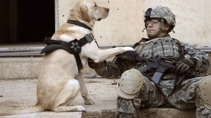 Per tutto il periodo tardo romano imperiale e il Medio Evo, i cronisti riferiscono di grandi mute di cani da guerra estesamente impiegate da più di un esercito (il capo unno Attila utilizzò una particolare razza di possente molosside per creare scompiglioi tra le file avversarie). Cani robusti ed aggressivi, di razza o meticci, dotati di spessi collari in cuoio e ferro, piccole armature dorsali legate al ventre e all’addome con cinghie, e perfino piccoli emetti chiodati: cani agghindati, insomma, come i destrieri della cavalleria pesante partica. Altri resoconti dell’Alto e Basso Medioevo riferiscono di grandi gesta ‘canine’ e dell’usanza da parte dei cavalieri cristiani di dare onorevole sepoltura ai loro fedeli compagni d’arme. Fino al punto di fare riportare la loro effigie scolpita ai piedi delle loro statue. L’uomo, in buona sostanza, nel corso della storia ha sempre sfruttato – anche a scopi violenti – la naturale predisposizione del cane all’obbedienza e alla fedeltà al proprio padrone: doti queste che spesso hanno spinto questi amabili animali a patire fatiche indicibili e a sacrificare la propria vita, ovviamente non tanto per un ideale guerresco e tanto meno politico o ideologico, ma per l’affetto nutrito nei confronti dell’uomo.