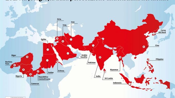 La libertà dei cristiani si restringe sempre di più nel mondo. In Medio Oriente, in Africa e in Asia aumentano gli attacchi sistematici contro le comunità cristiane. Già anni fa, a Ginevra, l’Arcivescovo Silvano M. Tomasi, Osservatore Permanente della Santa Sede presso le Nazioni Unite, parlando al Consiglio dei Diritti dell’Uomo, citò i dati sconvolgenti secondo cui, ogni anno, oltre centomila cristiani venivano uccisi per qualche motivo legato alla loro fede. Più o meno nello stesso periodo, la studiosa e ricercatrice austriaca Gudrun Kugler, nel Rapporto dell’Osservatorio sull’intolleranza e la discriminazione contro i cristiani, documentò come le limitazioni alla libertà religiosa e di espressione dei cristiani stavano crescendo a ritmo esponenziale anche in Europa.