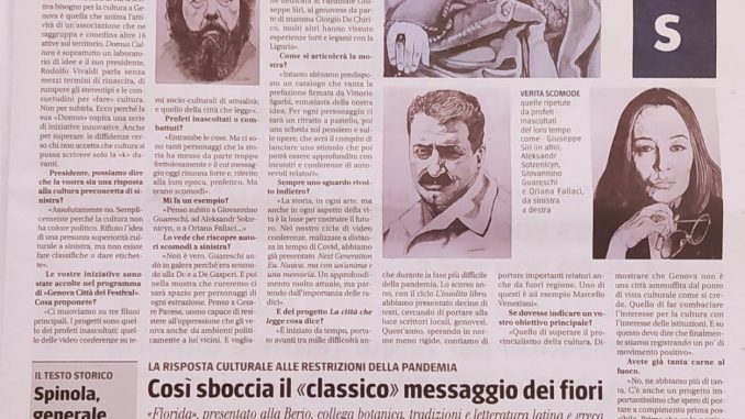 Domus Cultura nasce nel marzo del 2019 per volontà di venti cittadini, nella maggior parte presidenti di altre associazioni culturali e socio culturali genovesi e liguri, spesso con lunghi anni di attività alle spalle e con competenze professionali anche molto diverse tra loro: dalla filosofia alla storia e alla sociologia, dalla letteratura all’arte, dalla musica al cinema, dalla geopolitica all’ambiente, fino a comprendere lo sviluppo economico del territorio e quella riorganizzazione della pubblica amministrazione che appare oggi così indispensabile.