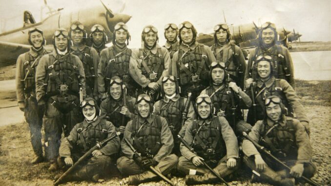 Nel corso della seconda guerra mondiale, precisamente nell’ottobre 1944, quando gli americani attaccarono Suluan (prima fase della battaglia di Leyte), l’ammiraglio Takijiro Onishi decise di formare una squadra di volontari della morte, non disponendo di altre risorse per contrastare il nemico. Nacque così la prima squadriglia di piloti suicidi, al comando del capitano Asaiki Tamai e del tenente Yukio Seki, che costituì una amara sorpresa per gli equipaggi della USS-Indiana e della USS-Reno, le prime navi americane attaccate, fino ai drammatici giorni di Okinawa, con l’operazione Kikusui (Crisantemi Galleggianti).