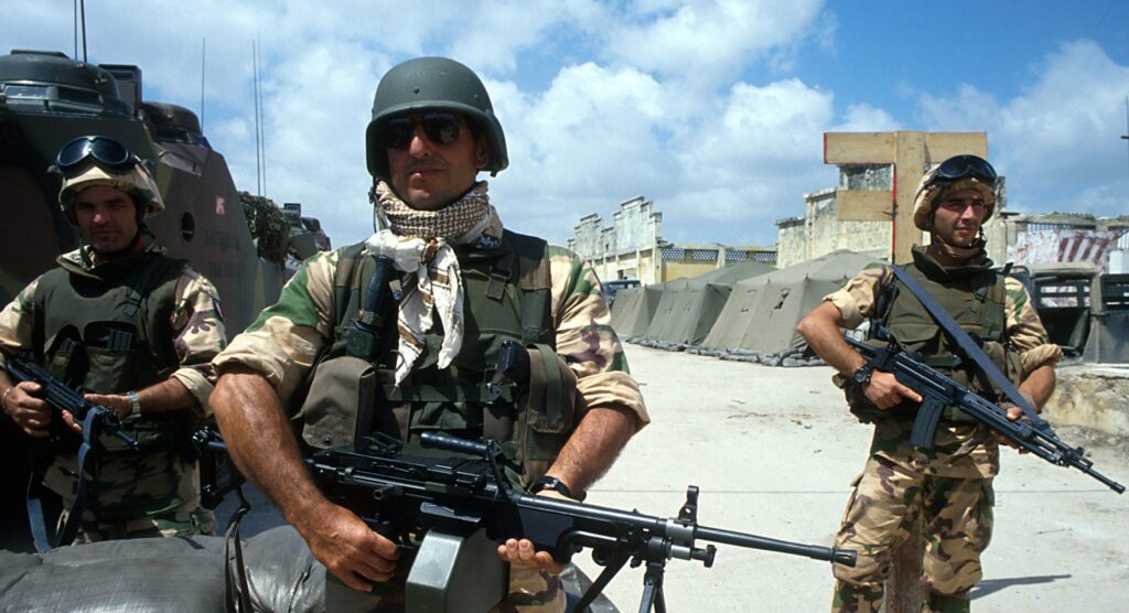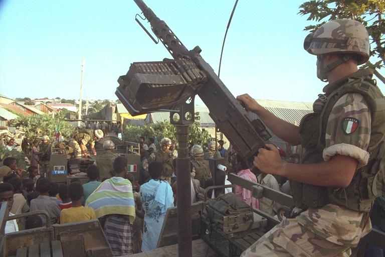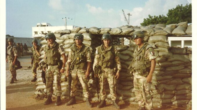 Era luglio 1993 quando a Mogadiscio (Somalia) l’Esercito Italiano e più esattamente un reparto scelto di fanteria del 186° Reggimento Paracadutisti «Folgore» (la XVa Compagnia Paracadutisti “Diavoli Neri”) fu coinvolto nella prima battaglia combattuta dall’esercito repubblicano dopo la fine della Seconda Guerra Mondiale. In Italia era l’alba di Tangentopoli e nel Mondo tramontava , seppur giovane, il Vecchio Ordine Mondiale nato a Yalta nel 1945, sostituito dal Nuovo Ordine Mondiale cresciuto sulle macerie del Muro di Berlino. La Somalia, contesa da bande jihadiste concorrenti, non era più sotto il tallone di Muhammad Siad Barre, ex ufficiale dell’Arma dei Carabinieri e addestrato a Firenze, che per vent’anni aveva imperversato nel Corno d’Africa e che nei suoi ultimi anni di potere era stato sponsorizzato dal Partito Socialista Italiano , guida Craxi e dai governi socialisti italiani. Si proprio quel Siad Barre convertito prima al marxismo di stretta osservanza sovietica e poi al craxismo. Cacciato , la Somalia fu devastata dalla «guerra civile» che proprio lui, Siad Barre, aveva provocato col suo regime. Per impedire che gli scontri tra fazioni jihadiste rivali evolvessero in una «pandemia islamista» l’ONU diede vita ad una «missione di pace» affidandola a Italia, Pakistan e Stati Uniti. Una missione militare che sarebbe finita male, malissimo. Fu a luglio , con la battaglia detta « del pastificio» (chiamato così perché lì c’era una volta uno stabilimento Barilla) che vide coinvolti i paracadutisti della Folgore compagnia Diavoli Neri al comando del capitano «Nero» , al secolo Paolo Riccò I Diavoli Neri respinsero l’attacco dei guerriglieri che obbedivano al «signore della guerra» Mohammed Farah Aidid, generale sotto Siad Barre. Non fu un attacco inaspettato perché in guerra tutto è inaspettato tranne gli scontri armati e perché è a questo che servono le «missioni militari» (anche se vengono chiamate di «pace»): a prevenire, quando é possibile e a reprimere quando é necessario gli attacchi «a sorpresa» degli eserciti – regolari e non – in campo.