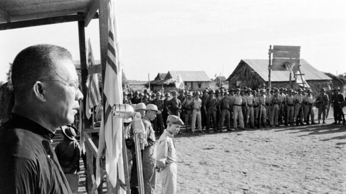 Sacerdoti cattolici in Sud Vietnam, alla testa dei propri parrocchiani trasformati in miliziani armati e addestrati alla guerriglia e controguerriglia.