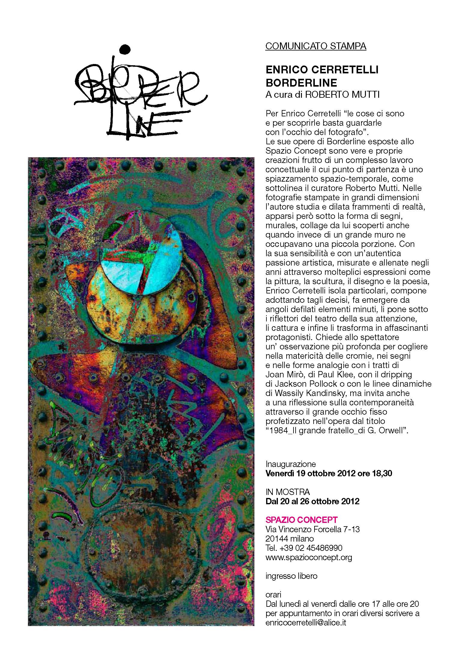 Arte. ‘Borderline’: Le opere pittoriche di Enrico Cerretelli. ‘Gli artisti se ne vanno, ma le loro opere rimangono. Come il loro ricordo in noi’. 15 Ottobre 2012 Alberto Cinema & Teatro 0 Le opere pittoriche di Enrico Cerretelli Enrico Cerretelli. 'Omaggio a Mirò' Adriana CerretelliAlberto RosselliAlfio KrancicArenzanoArte a MilanoBebe RosselliEnrico CerretelliFotografiaIl Sole 24 OreLaura CerretelliLigurpressMilanoMonica IughettiNuova Aurora EditricePiero VassalloPineta di ArenzanoPitturaSanta GiuliaSculturaSpazio ConceptStoria Verita