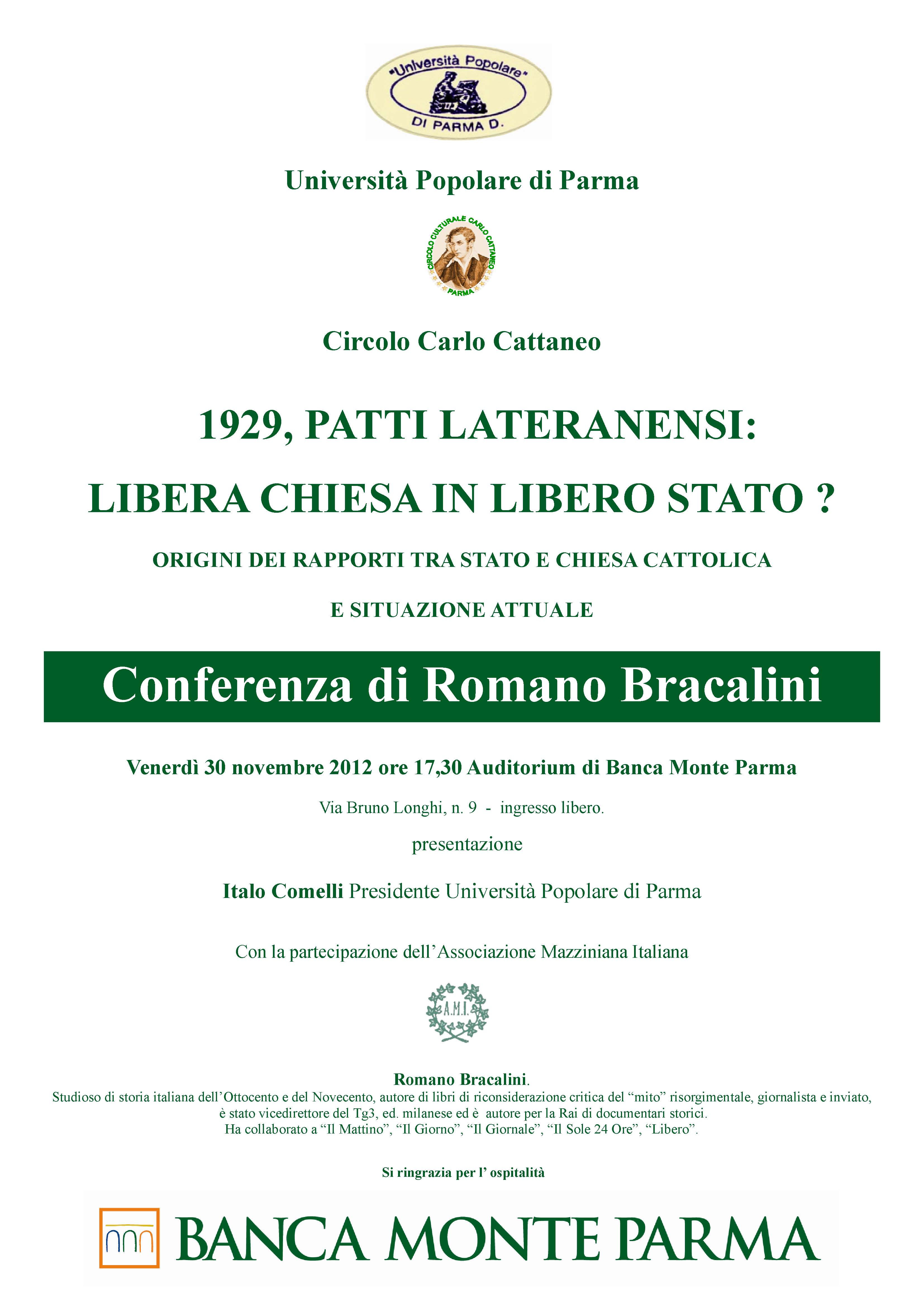 Eventi: Parma. Conferenza su ‘1929, Patti Lateranensi: Libera Chiesa in libero Stato’. 28 Novembre 2012 Alberto Eventi & Convegni, Storia Contemporanea 0 1929: Patti lateranensi. 1929Alberto RosselliBracaliniCircolo Cattaneo ParmaDecio LucanoEnzo CiprianoGino SalviLaura VarvelliLigurpressLuciano GaribaldiPatti LateranensiPiero VassalloRoberto De MatteiRoberto MaurielloStoria VeritaTommaso RomanoVirgilio Catellani