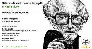 Appuntamenti Culturali. Giovedì, 5 Dicembre, ore 19, presso lo Spazio Energolab di Via Plinio 38, Milano: Conferenza su Salazar e la rivoluzione in Portogallo, di Mircea Eliade. 30 Novembre 2013 Alberto Eventi & Convegni 0 Appuntamenti culturali. Alberto RosselliAlfio KrancicCarmelo FerlitoEnzo CiprianoFirenzeGenovaGino SalviLaura VarvelliLigurpressLuciano GaribaldiMarcello VenezianiMarco CimminoMattioliMilanoMircea EliadeNuova Aurora EditricePaolo BozPortogalloPrimo SienaRoberto De MatteiRoberto MaurielloSalazarSeconda Guerra MondialeSpazio EnergolabStoria VeritaTommaso Romano