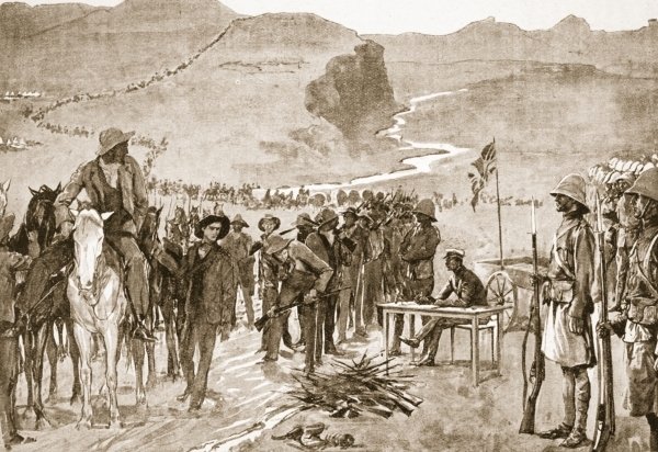 Nel 1898 una sola tribù, stanziata da due secoli nell’Africa australe, si opponeva ancora alla travolgente avanzata delle Giubbe Rosse. I suoi componenti avevano percorso centinaia di chilometri verso Nord per sfuggire all’influenza britannica nella regione del Capo ed avevano già incrociato le armi con gli Inglesi per salvaguardare la propria indipendenza, infliggendo loro una pesante sconfitta a Majuba Hill nel 1881. Si trattava di un popolo di origine europea, i Boeri, discendenti diretti dei primi coloni olandesi approdati lungo le coste del Sudafrica a metà del Seicento. Per Joseph Chamberlain, allora Ministro delle Colonie e teorico della politica espansionistica inglese, la volontà d’indipendenza dei Boeri era intollerabile. Quale la vera ragione di tanto accanimento? Come al solito i calcoli inglesi erano allo stesso tempo strategici ed economici. Nonostante la sempre crescente importanza del Canale di Suez per il commercio britannico con l’Asia, il Capo rimaneva una base militare d’immensa rilevanza per l’Inghilterra, dato che Suez poteva rischiare di venir chiuso nel corso di una guerra europea; rimaneva anzi, agli occhi di Chamberlain, “la pietra angolare di tutto il sistema coloniale britannico”. Allo stesso tempo non era certo di secondaria importanza il fatto che una delle repubbliche boere fosse situata sul più grande giacimento aurifero del globo. Nel 1900 il Transvaal produceva un quarto dell’oro di tutto il mondo, aveva assorbito 114 milioni di sterline di capitale, in gran parte britannico, e si avviava a diventare il centro di gravità economico dell’intera area: un bottino decisamente troppo ricco da lasciare agli Olandesi…