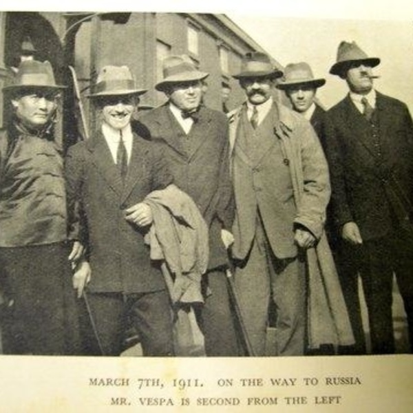 Pare esatta la notizia secondo cui Amleto Vespa avrebbe abbandonato l’Italia nel 1908, in direzione San Francisco, per poi dirigersi a Vladivostok, dove in quegli anni vi erano cantieri con molti lavoratori italiani, impiegati nella costruzione della ferrovia Transiberiana. Molti erano originari di Rocca di Cambio e Rocca di Mezzo, richiesti in quanto abilissimi scalpellini, che sapevano come perforare le montagne. Vespa si unì a loro e, poco prima del 1915, si trasferì in Siberia, si presume come agente segreto per conto dell’esercito italiano. Elementi di sospetto sul ruolo di intelligence che ricopre sono i numerosi spostamenti prima della Grande Guerra, e il fatto che fosse uno dei pochi italiani a non essere richiamato alle armi, a giudicare dal foglio matricolare.