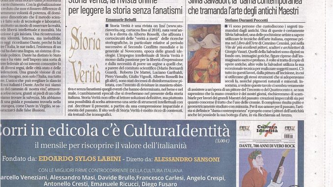 Riconoscimenti: ‘Il Giornale’ (quotidiano) segnala ai lettori la Rivista ‘Storia Verità’. 23 Febbraio 2021 Alberto Comunicazioni redazionali, Eventi & Convegni 0 Testata 'Il Giornale'. Alberto RosselliCultura IdentitàEmanuele BeluffiIl GiornaleStoria VeritàTazebao