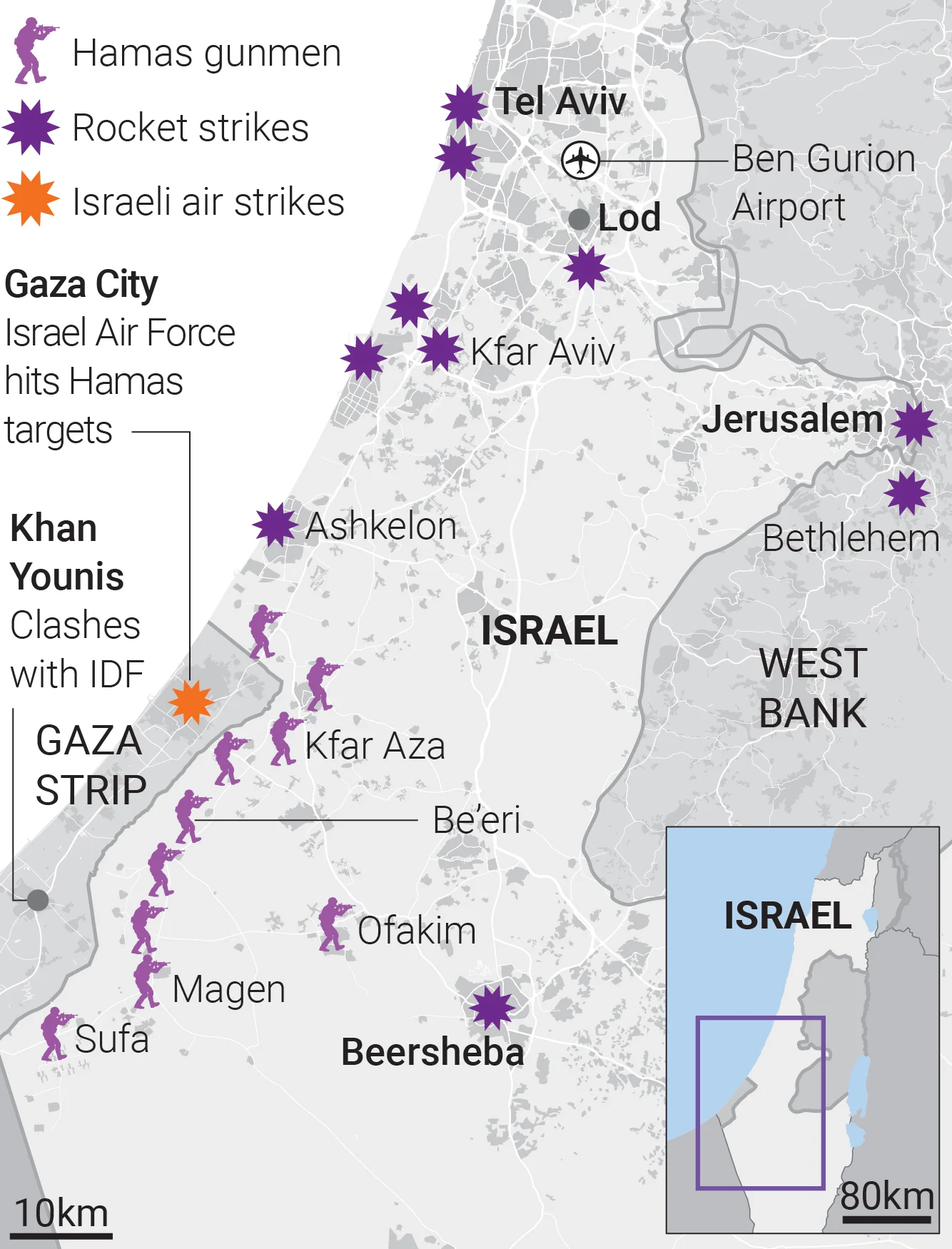 La mappa raffigurante l’attacco di Hamas ad Israele.