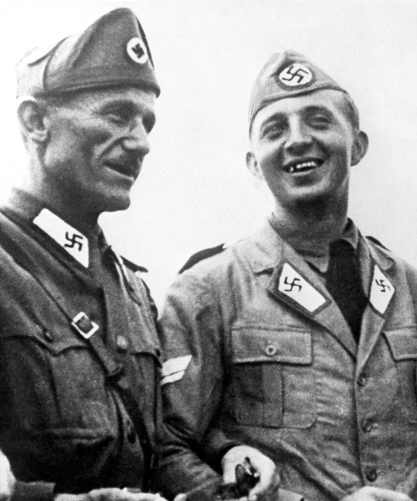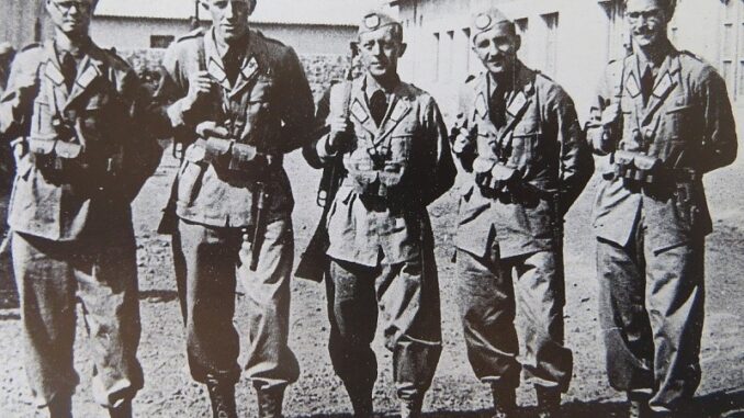 L’armamento individuale consisteva nel moschetto 91/38 e, per gli ufficiali e sottufficiali, della pistola Beretta Mod. 34 (o Glisenti M1910), mentre quello di squadra erano la mitragliatrice Schwarzlose e il fucile mitragliatore Breda Mod. 30[6]. Una volta arruolati e dopo aver giurato -peraltro senza troppa convinzione[7]– fedeltà al Re (dubito però che siano diventati davvero parte integrante e a pieno titolo del Regio Esercito: osservando con attenzione le poche foto a disposizioni, infatti, si nota l’assenza delle stellette, segno di piena e formale appartenenza alle nostre Forze Armate), si posero due problemi: come addestrarli e come impiegarli operativamente. Nell’attesa di una decisione sul loro impiego, e avendo a disposizione come quadri soltanto l’Oberleutnant (Tenente) Gustav Hamel ed un sottufficiale, l’Hauptfeldwebel (Maresciallo Capo) Adolf Bremer, che con pochi altri volontari avevano avuto esperienze militari durante la Grande Guerra, si procedette all’addestramento: prima quello formale e, subito dopo, quello vero e proprio, in quanto la gran parte dei volontari non aveva mai prestato servizio militare. L’unità ebbe anche un gagliardetto, sembra disegnato dallo stesso Governatore dell’Eritrea Frusci: un lato vi era una normale bandiera italiana e dall’altro lato la bandiera del Terzo Reich con una svastica. L’asta