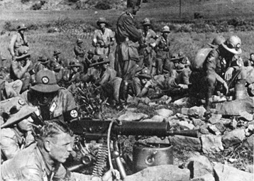 Volontari della Compagnia Autocarrata Tedesca si addestrano all’uso di mitragliatrici Shwarzloze cedute dagli italiani.
