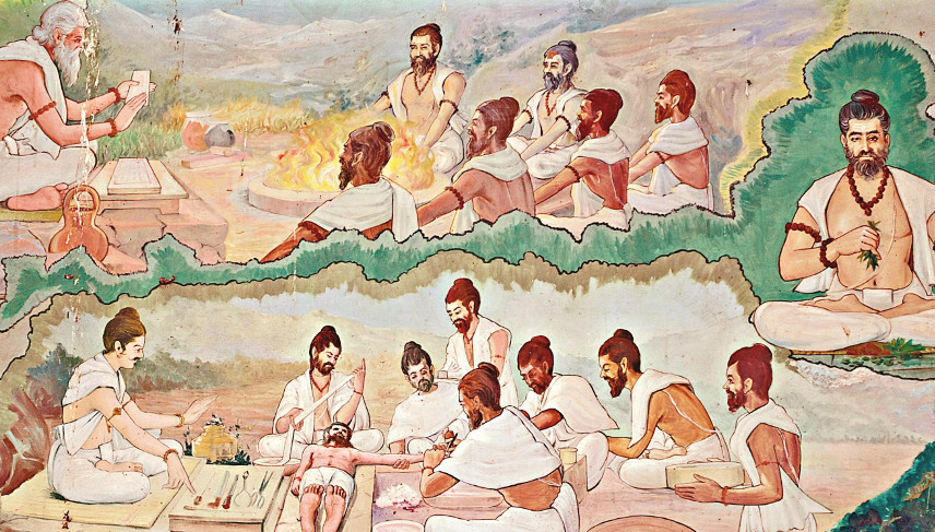 L’Ayurveda ha un’origine divina, come è scritto nel Charaka Samhita, che non è soltanto il primo libro di medicina indiana, e nemmeno il primo libro di medicina, ma è, insieme ai Veda, uno dei primi libri a noi pervenuti. Origine divina, vera o presunta non sposta il problema: c’è stato un popolo, gli Arya, che ha immaginato che la cura della salute provenisse da una elargizione divina. Nella storia delle religioni è comune rivolgersi alle divinità per impetrare la salute perduta; nella nostra tradizione a partire dai Greci, che si rivolgono ad Apollo fino al Cristianesimo, che esorta a pregare per la salute e che ha individuato luoghi dove la preghiera assume una maggior potenza e che ha, attraverso il culto mariano e dei santi, educato a rivolgersi a mediatori che intercedano presso il Dio nei cieli, c’è questo rapporto fra l’uomo e il divino che può garantire la salute, proteggere dalla malattia, e, persino attraverso il miracolo sanare malattie considerate irreversibili. In nessuna altra cultura e in nessuna altra religione è stato immaginato il diretto intervento del Divino che offre all’umanità un programma esistenziale, che è una proposta per uno stile di vita, ma non solo, da seguire per garantire la salute e per recuperarla quand’essa fosse perduta, nella considerazione tuttavia che la vita ha una fine, e che nulla può eliminare la morte.