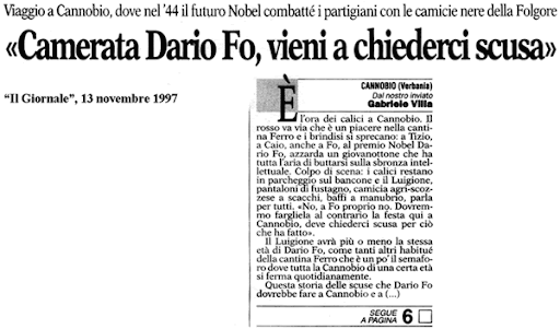 Il ‘candido’ passato in camicia nera del ‘repubblichino’ Dario Fo. Di Claudio Cartaldo (*).