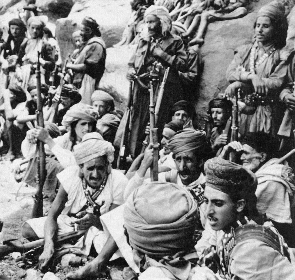 Sotto il profilo bellico, la guerra proseguì tra alterne vicende e nonostante il forte spiegamento di truppe egiziane, i repubblicani dovettero limitarsi a brevi e limitate offensive, ma più che altro a difendersi dall’aggressività dei guerriglieri che pur mancando di aviazione e mezzi blindati e corazzati, effettuarono – armati di fucili, fucili mitragliatori mitragliatrici, mortai da 81 mm. e bazooka gran parte dei quali sottratti ai reparti repubblicani – numerosi, improvvisi e riusciti colpi di mano ai danni degli avamposti e delle colonne motorizzate nemiche. Agli egiziano non rimase quindi che impiegare i loro caccia e caccia bombardieri Mig, Ilyushin e Tupolev per cercare di disperdere gli sfuggenti reparti lealisti e soprattutto per mettere a ferro e fuoco, con bombe a frammentazione e al napalm, i centri agricoli fedeli all’imàm. Ma anche l’aviazione di Nasser non ebbe vita facile in quanto i guerriglieri disponevano di alcune decine di mitragliatrici pesanti da 12,7 e da 14 mm. di fabbricazione sovietica catturate, con le quali riuscirono più volte a danneggiare i velivoli nemici. Va notato che, subito dopo l’inizio della Guerra Civile, il generale monarchico Abu Taleb (il migliore ufficiale superiore della compagine guerrigliera yemenita) – coadiuvato da un bizzarro ma preparato militare europeo, il principe di Condé, un ex-ufficiale francese di nobili origini che, dopo essersi fatto mussulmano e mutato il proprio nome in Abdurrahman Kenda, si è schierato con i monarchici – provvide ad istituire nel villaggio di El Giof una piccola ma efficiente “scuola militare” dove molti combattenti vennero addestrati da ex ufficiali dell’esercito all’uso di armamenti moderni ed esplosivi. A fronteggiare con successo gli oltre 100.000 soldati repubblicani ed egiziani, appoggiati da artiglierie da 76, 122 e 130 millimetri e da mezzi corazzati T34/85, JS. 3 e T54 e blindati sovietici, era ormai un vero e proprio esercito: una compagine di matrice essenzialmente tribale e nomade, ma per questo molto mobile e ben insediata sul territorio.