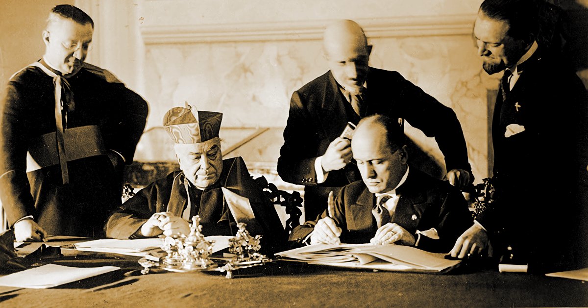 La firma del Concordato tra Stato e Chiesa (11 Febbraio 1929).