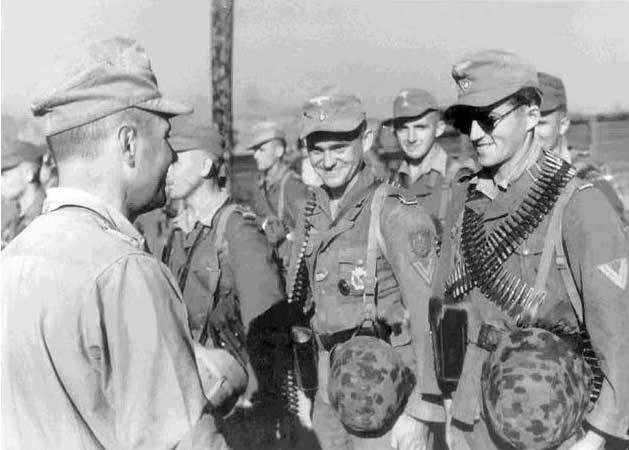 L’8 Maggio 1945, il GenMjr Wagener fu portato dal KJ 25 a Symi, per firmare il documento di resa. Al momento di lasciare il KJ 25 il comandante ufficiale del cacciatorpediniere della Royal Navy Active, Legge, si congratulò con Wagener che firmò il documento di resa alla presenza del generale J. Moffat (Esercito inglese), del colonnello Tsigantes (Esercito greco) e del comandante del caccia Alsacien (della Marina francese). Il 9 maggio 1945 anche il generale Benthack firmò la resa della guarnigione tedesca di Creta a Iraklion, ma i tedeschi dovettero attendere parecchio l’arrivo delle truppe inglesi. L’11 maggio accadde però un fatto nuovo e curioso. Le truppe inglesi vennero improvvisamente attaccate da numerosi reparti dell’“ELAS” (il movimento di resistenza comunista greco). I britannici si videro dunque costretti a chiedere aiuto ai tedeschi che inviarono un reparto corazzato che respinse i partigiani greci, raccogliendo il plauso del brigadiere generale Preston, comandante del Corpo di spedizione inglese a Creta. Ma non fu tutto. Fino alla fine del giugno 1945, almeno 1.600 soldati tedeschi di base a Suda parteciparono al fianco degli inglesi a combattimenti contro i guerriglieri comunisti greci, contribuendo in maniera determinante alla loro disfatta.