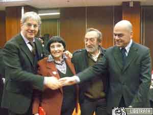 Verona (2007). Convegno sulla Turchia e l’Europa. Da sinistra: Giovanni Perez, Anna Valerio e sorella, Alberto Rosselli, Marco Cimmino.